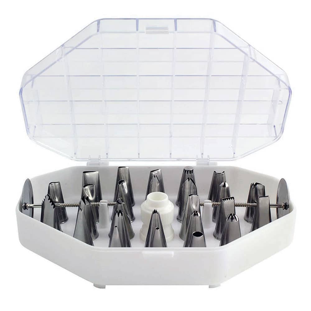 Komplekt sisaldab 26 roostevabast terasest standardsuuruses otsakut, 2 lillenaela, 1 standardsuuruses adapterit ning 1 hoiukarpi. Sobib professionaalidele ja on kasutatav kõikvõimalike kaunistuste tegemiseks. Komplekti sisu: suletud tähe otsakud nr. 24, 27, 30; korvi punumiseks nr. 44, 47; lilleõie otsakud nr. 140, 217; lehe otsakud nr. 67, 70; kroonlehe otsakud nr. 59, 61, 63, 101, 103, 104; avatud täht nr. 13, 18; erikujulised nr. 77, 95, 96, 97, 98; ümmargused nr. 2, 4, 10; satsid nr. 88; 2 lillenaela ja adapter.