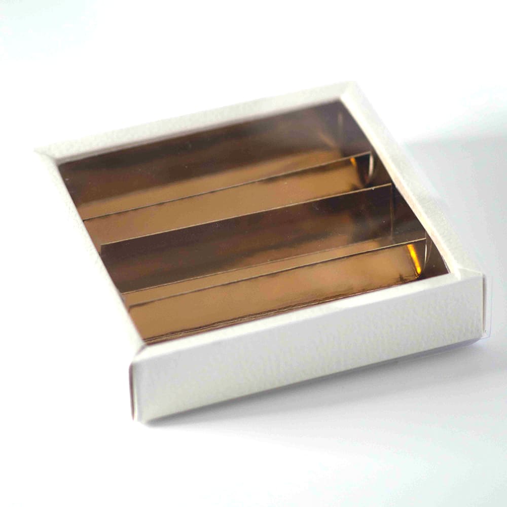 Komplekti kuulub 2 pidulikku kreemikat karpi maiustuste pakendamiseks. Karbi sisse käib kuldne sisu, mis jaotab karbi neljaks vaheks. Karbid tuleb ise kokku voltida. Karbi mõõdud (sisemised): 14,5 x 14,5 x 3,5 cm.