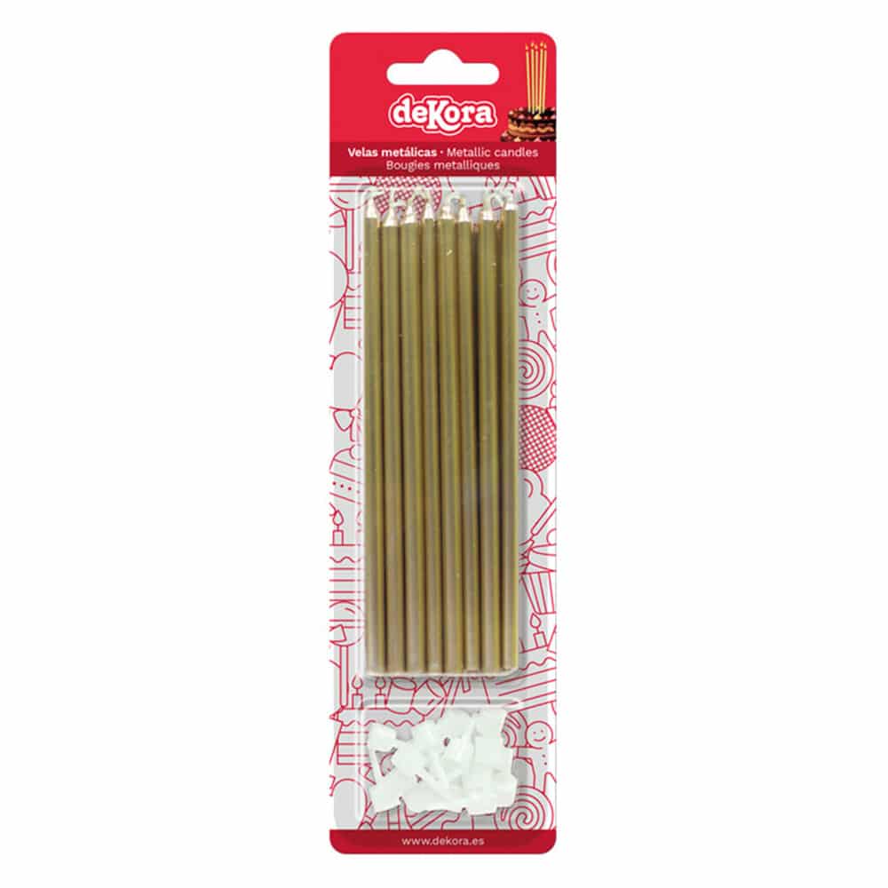 Kuldsed pikad tordiküünlad 13 cm, 16 tk