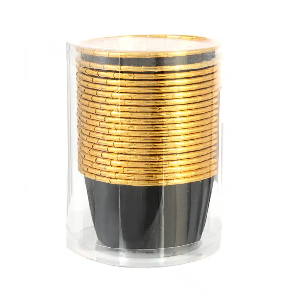 Tugevast mustast paberist ja kvaliteetsest fooliumist küpsetuskindlad muffinitopsid saab ahju pista ilma metallist muffinivormita – paberid hoiavad kenasti oma kuju. Läbimõõt ca 5 cm, kõrgus 4 cm.