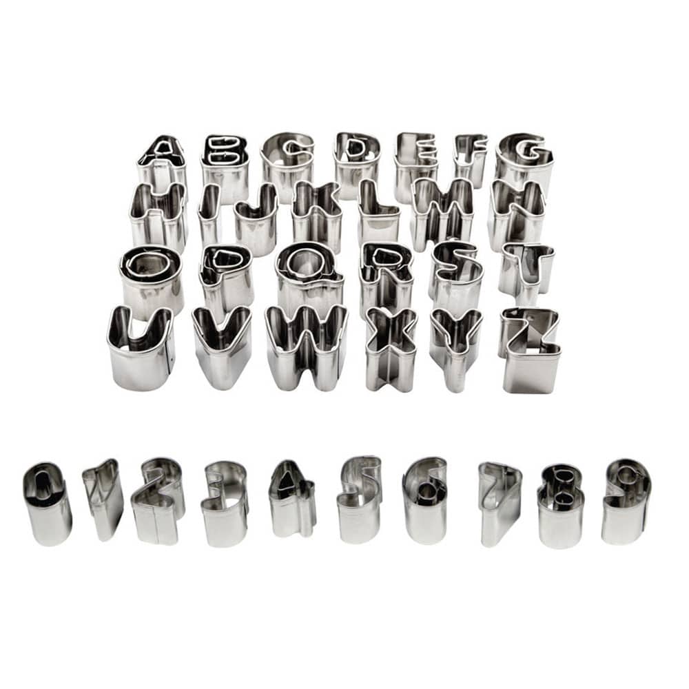 Komplekti kuulub roostevabast terasest tähestik ja numbrid, mis on paigutatud metallkarpi. PS! Ei sisalda täpitähti. Vormide suurus ca 20×20 mm.
